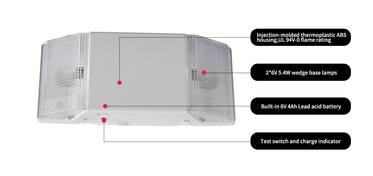 *Built-in 6V 4Ah lead acid baterya para sa minimum na 90 minuto na operasyon ng emerhensiya.
