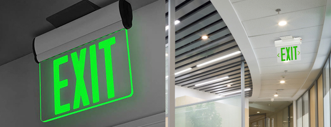 *Pag -iilaw - Ang gilid na ito ay naglabas ng serye ng pag -sign ng exit ay nagbibigay ng isang mahabang buhay na pag -iilaw ng LED. Ang yunit ay itinayo gamit ang isang berdeng mataas na output LED board.  Ang pagkonsumo ng enerhiya ay minarkahan ng mas mababa sa 3 watts para sa mga yunit ng modelo lamang ng AC. Ang mga yunit ng pag -backup ng baterya ay na -rate ng mas mababa sa 1 watts.